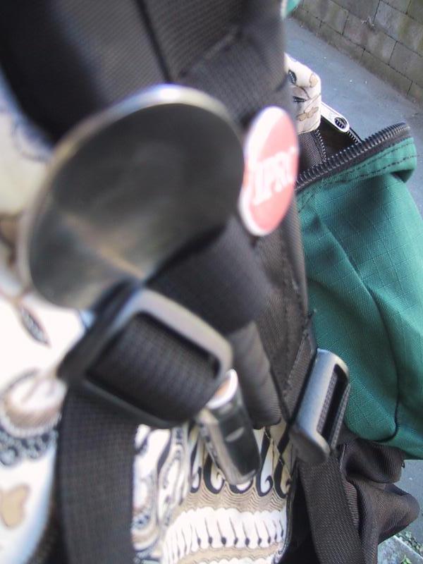 Close up, spoon, button, bag, shirt. | |