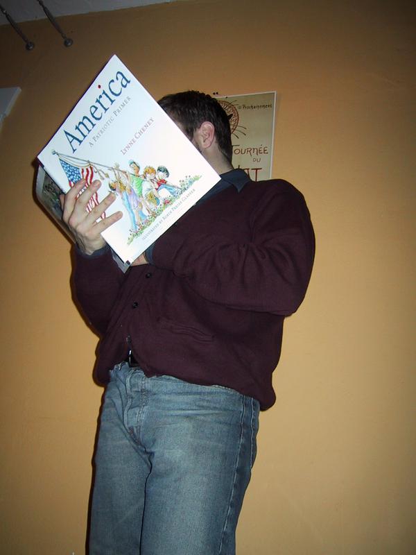 Before eating, Mike reads to us Lynne Cheney's little number, America, a Patriotic Primer. B is for Bullshit. | |