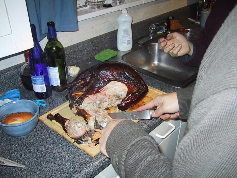 Basting with a mixture of honey, whiskey, and butter. | |